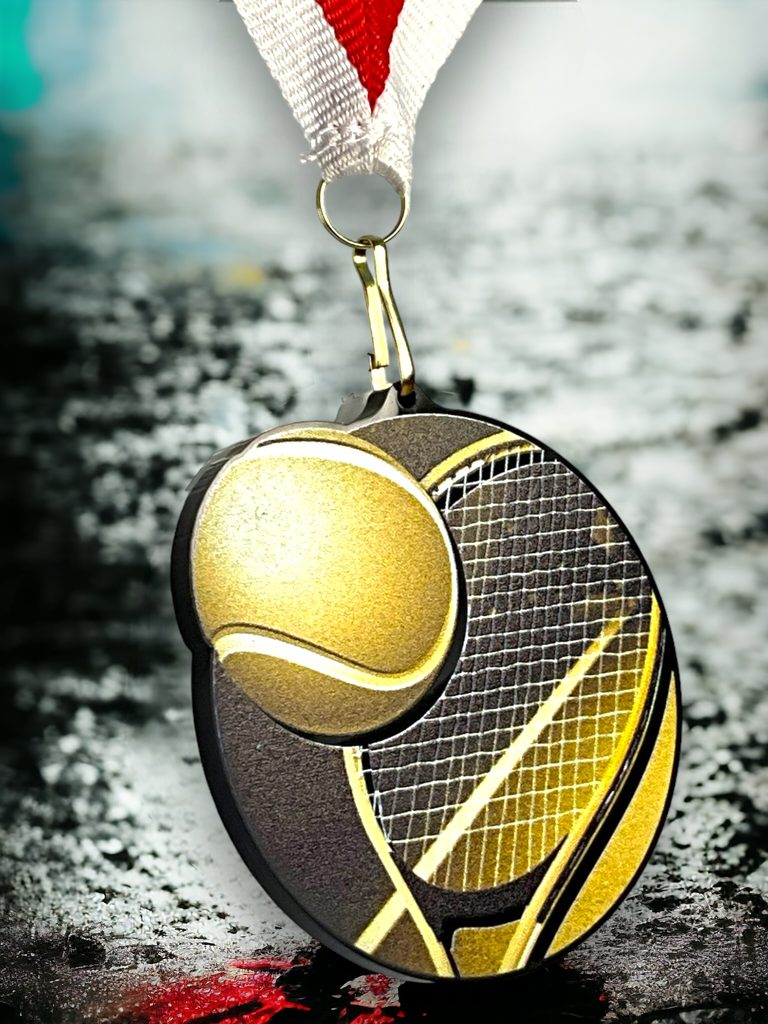 Dicke 0,3 cm. Preis für 1 Medaille inklusive Band. Spezielles schwarzes glänzendes Acryl. Spezieller Schichtdruck.