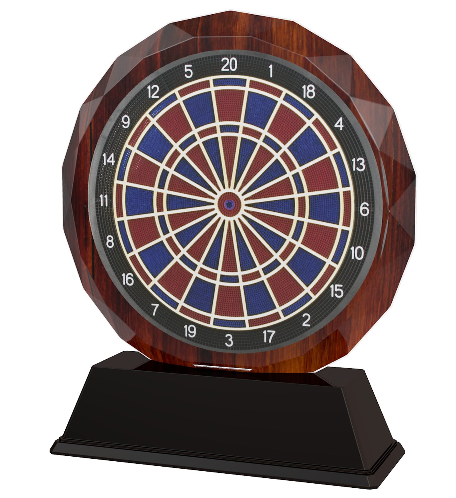 Trophäe aus Acryl. Einseitiger Druck. Dicke 0,8 cm. Der Preis der Trophäe beinhaltet nicht den Preis des Etiketts. Schwarzer Plastiksockel.