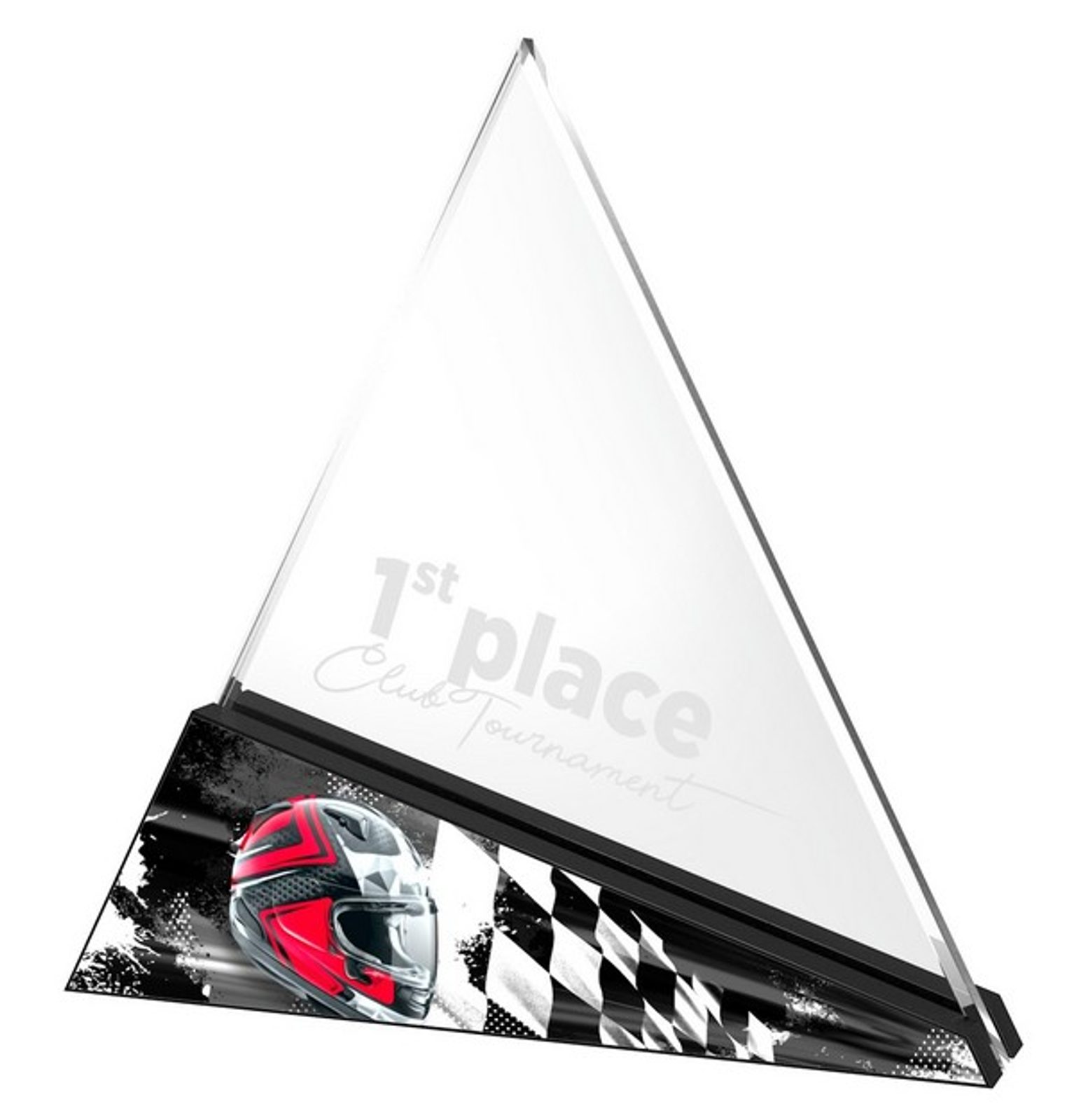 Acryl-Trophäe aus Acrylglas mit UV-Druck auf dem Acrylsockel. Materialstärke 1 cm. Möglichkeit, Text direkt in die Trophäe im Preis des Etiketts/Schildchen einzufügen.