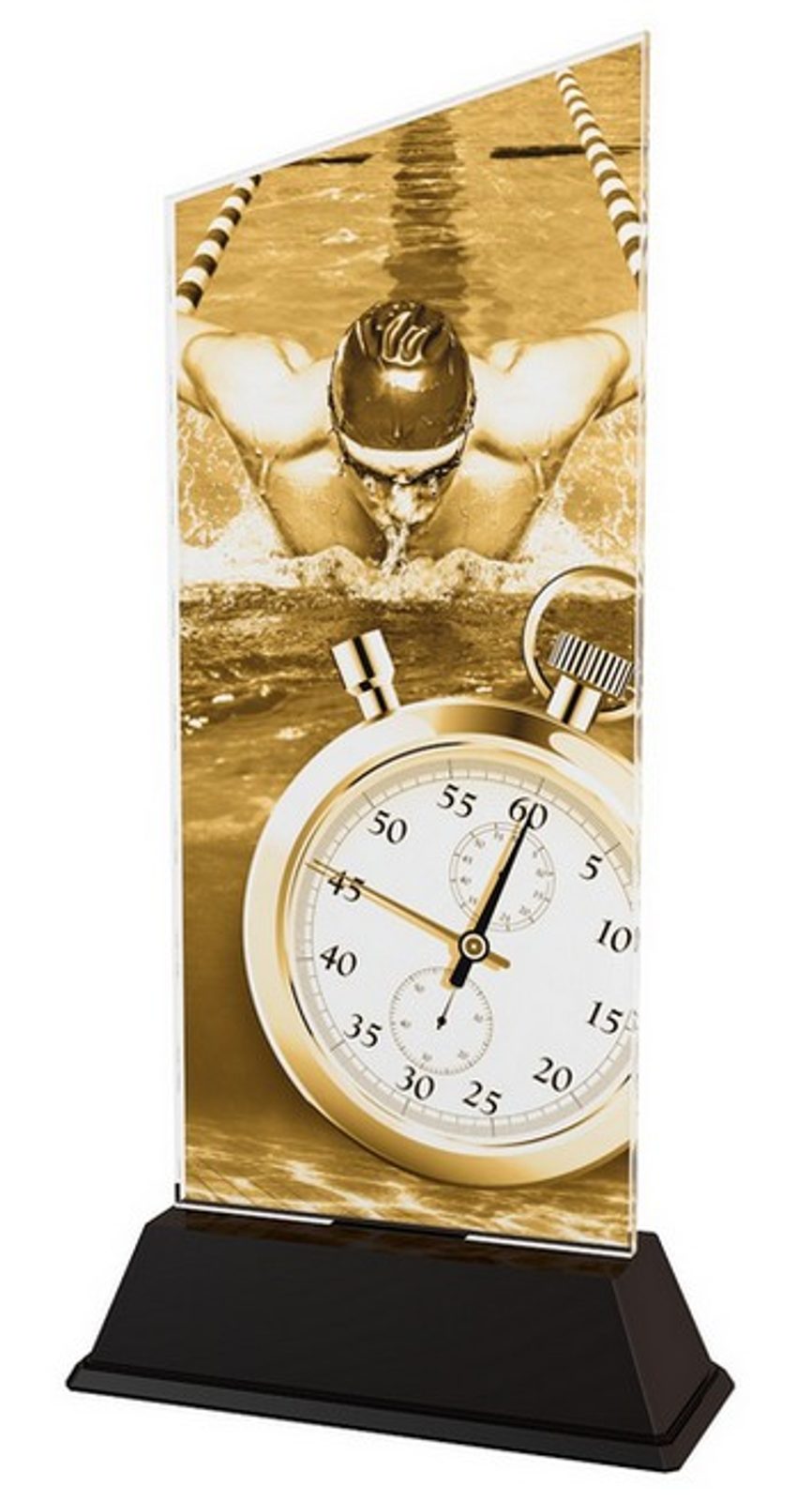Acryltrophäe mit Druck. Einseitiger Druck. Preis ohne Schildchen. Acrylmotiv. Stärke 0.4 cm. Sockel Schwarz. Höhe der Trophäen sind Orientierungsbeispiele.