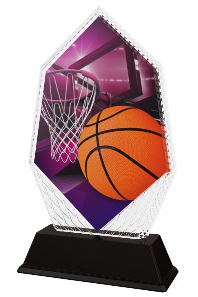 Acryltrophäe mit Druck. Einseitiger Druck. Preis ohne Schildchen. Acrylmotiv. Stärke 0.8 cm. Sockel Schwarz. Höhe der Trophäen sind Orientierungsbeispiele.