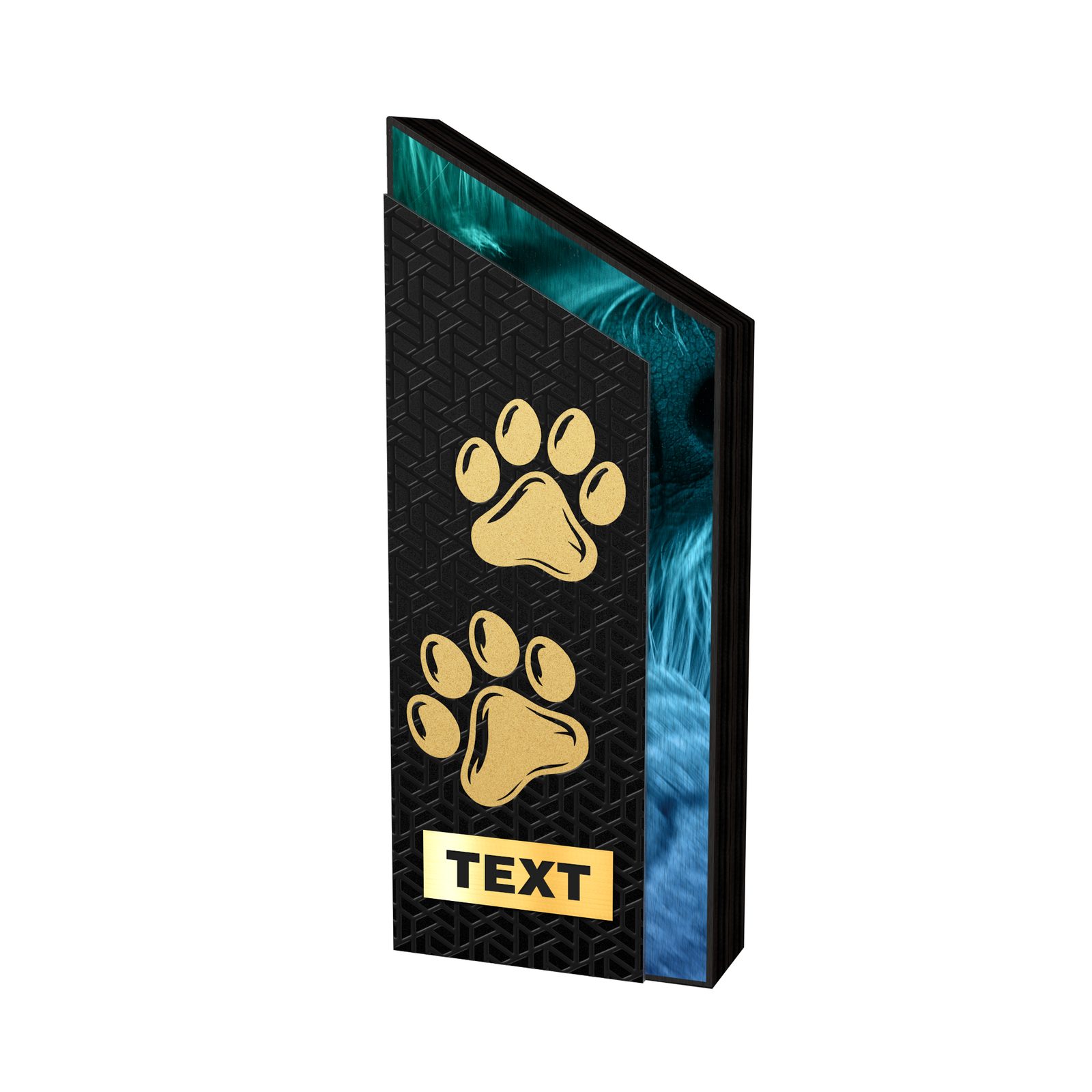 Sporttrophäe aus hochwertigem Holz mit einer Stärke von 3 cm und einem Edelstahlelement mit einer Stärke von 2 mm, erhältlich in drei Höhen und vier Farbvarianten. Im unteren Teil kann ein Kunststoff- oder Metallschild angebracht werden.